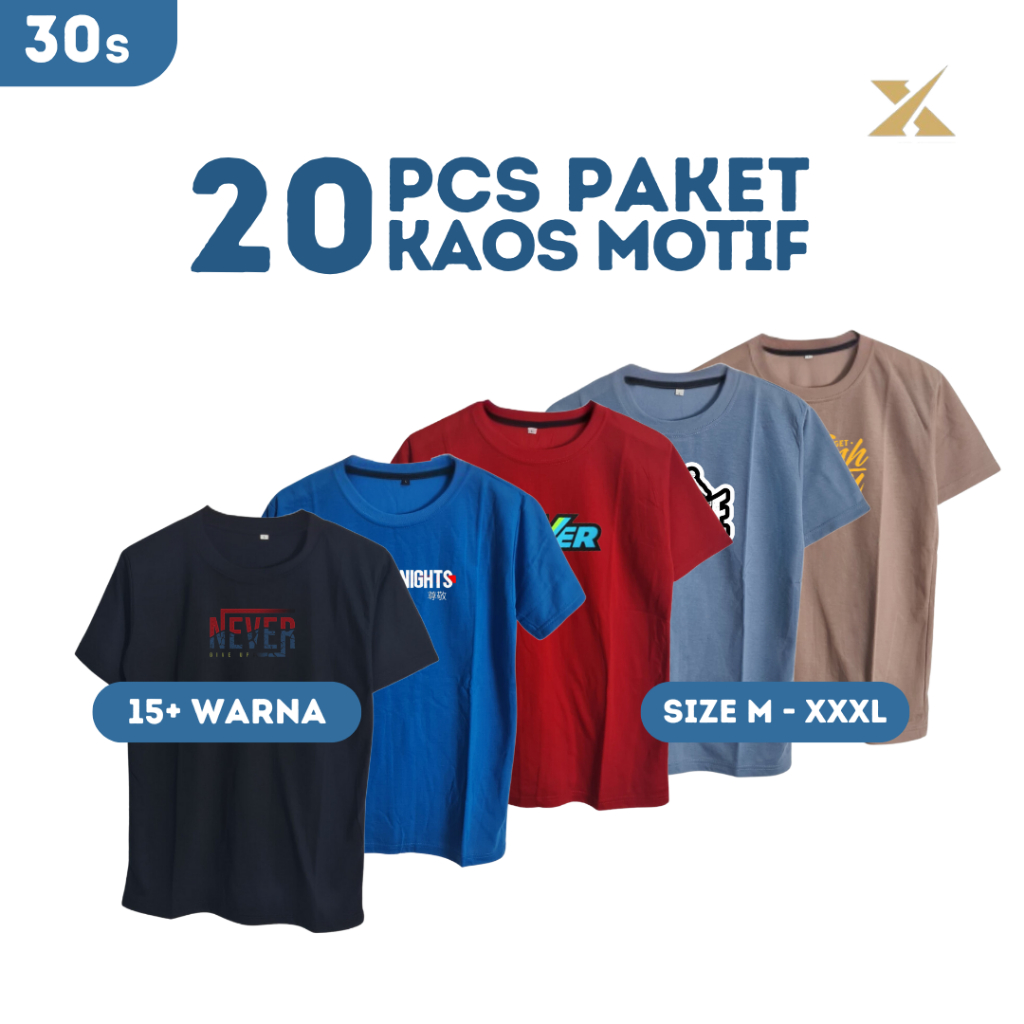 PAKET HEMAT 20 PCS KAOS UNISEX MOTIF LENGAN PENDEK BAJU ATASAN PRIA WANITA POLYCOTTON 30S OBLONG BISA MIX WARNA MURAH