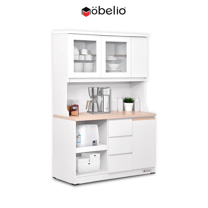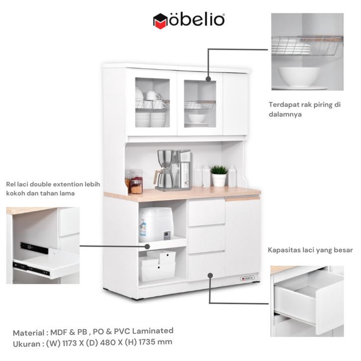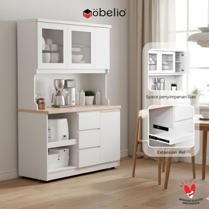 LEMARI RAK PIRING SAYUR 3 PINTU MOBELIO CERMIN KACA KITCHEN SET LACI PVC PAPER OVERLAY COATING SPRAY MINIMALIS MODERN