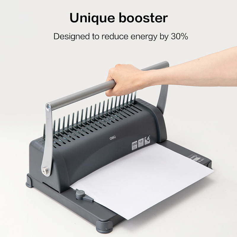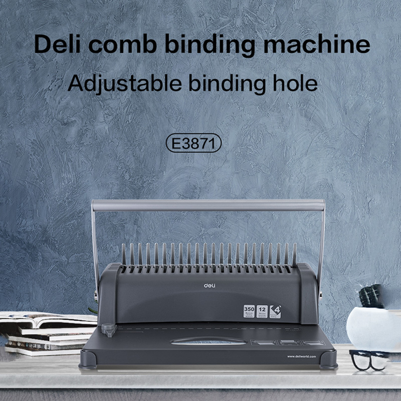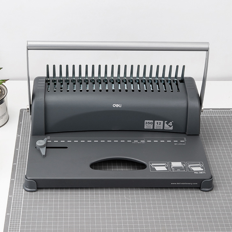 DELI BINDING MACHINE MESIN JILID SPIRAL PLASTIK A4 21 LUBANG KOTAK KAPASITAS 12 LEMBAR E3871