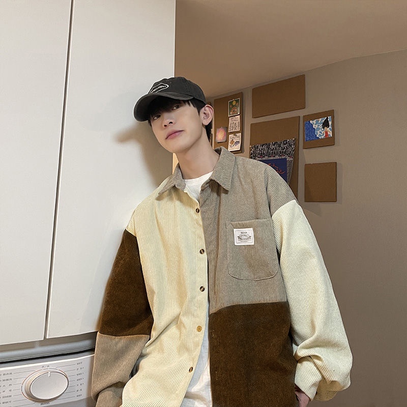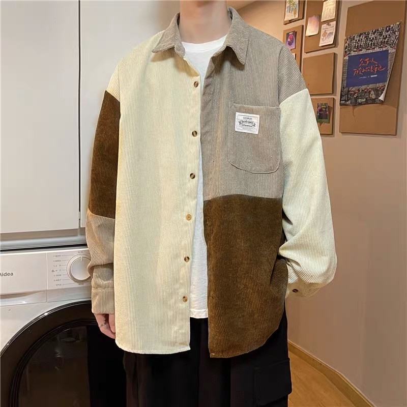 KEMEJA KORDUROI RETRO JEPANG PRIA LONGGAR TREN KEMEJA JAKET ATASAN LENGAN PANJANG