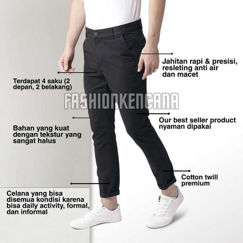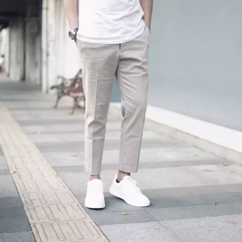 CELANA CHINO ANKLE PANTS PANJANG PRIA SLIMFIT KERJAHARIAN SANTAI KASUAL FORMAL HITAM ABU CREAM MOCCA