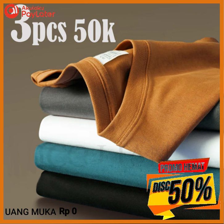 Baju Kaos Polos Pria Wanita PROMO KAOS POLOS 3PCS 50K BISA UNISEX Best Seller