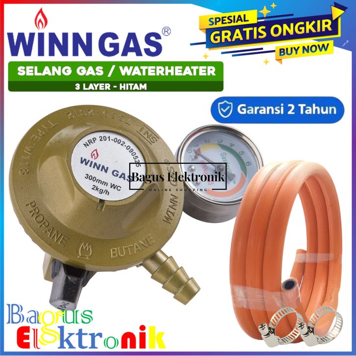 1SET PAKET Winn Gas Regulator W-118M+Selsng Gas Oren 2 Meter Kepala Regulator Kompor Gas Meter W118M LPG Tekanan Rendah