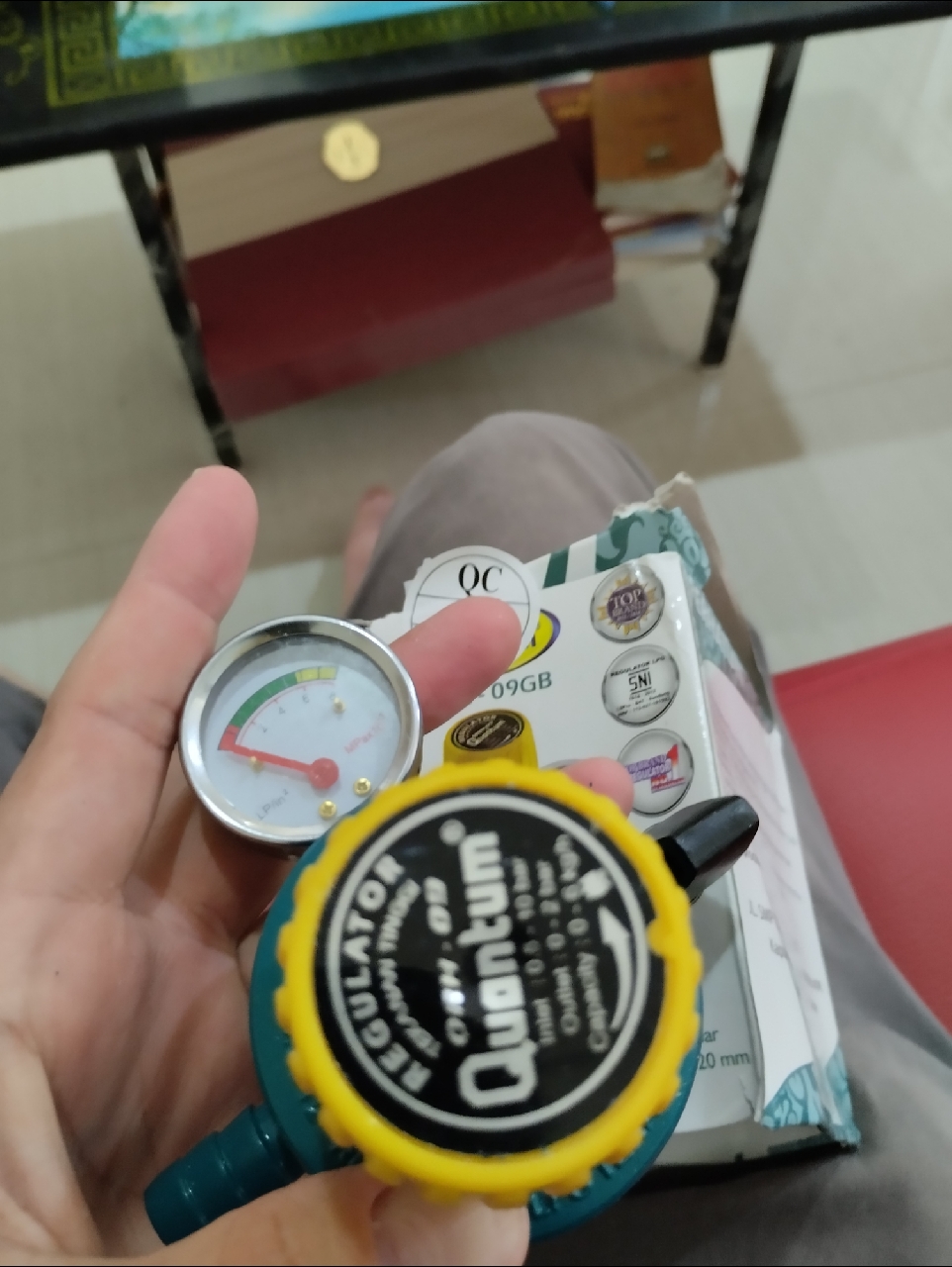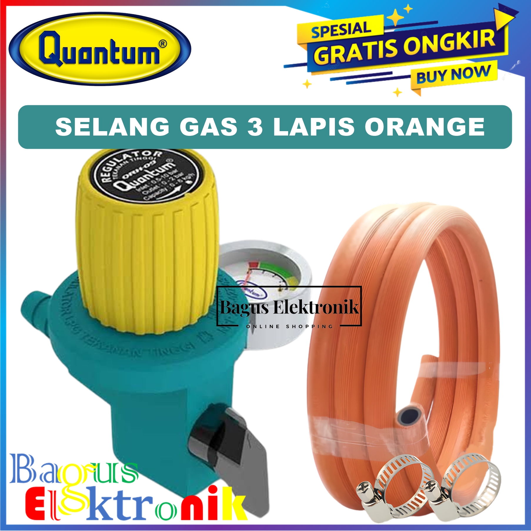 1SET PAKET Regulator Gas Quantum QRH09+Selang Gas Orange 2 Meter High Pressure Dengan Meteran Tekanan Tinggi 2 bar QRH09