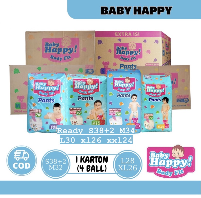 Promo Pampers Baby Happy Pants S40/M34/L30/XL26/XXL24 1 Karton Isi 4 Ball Termurah Popok Bayi