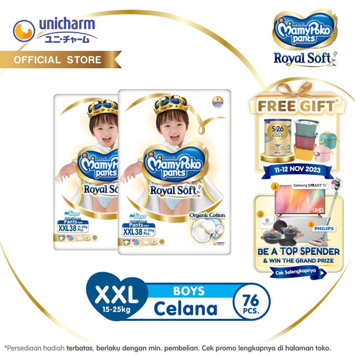 MamyPoko Pants Royal Soft Organic Cotton - XXL 38 - Boys - Popok Celana - 2 Packs