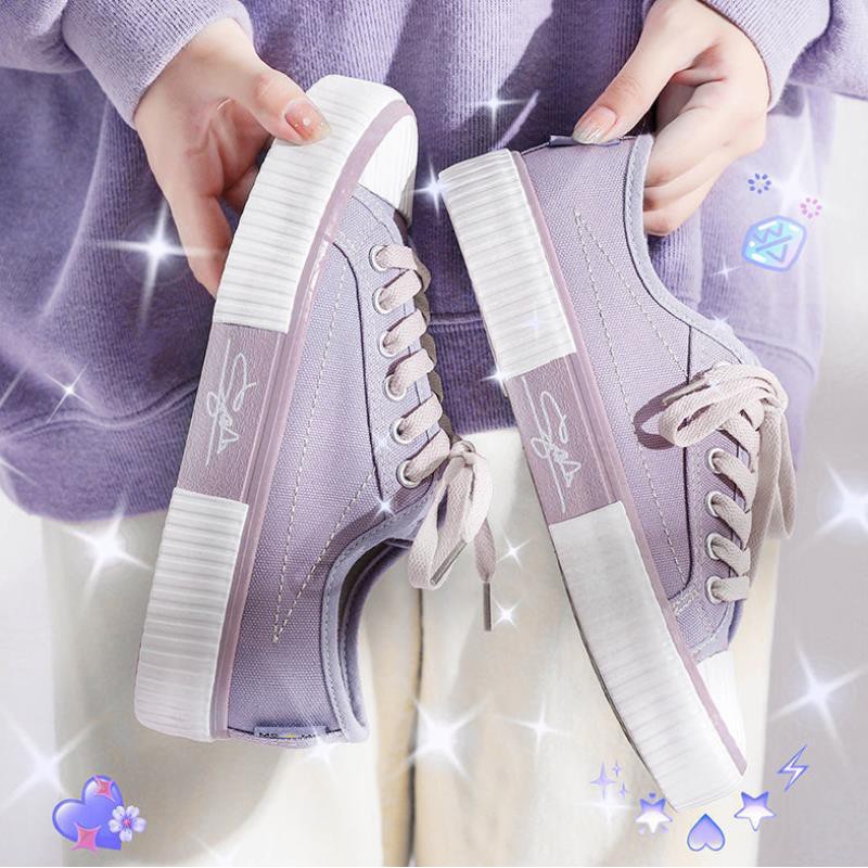 SEPATU SNEAKERS KANVAS WANITA CASUAL SPORT SHOES HITAM UNGU PUTIH ONLINEMALL (209)