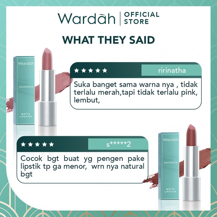 Wardah Exclusive Matte Lipstick - Warna Intense dalam Sekali Oles - Pigmented Tahan Lama dengan Hasil Akhir Soft Matte