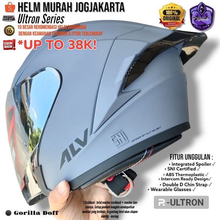 TERMURAH!!!!HELM HALF FACE ALV ULTRON PAKET GANTENG ORIGINAL100% ALV