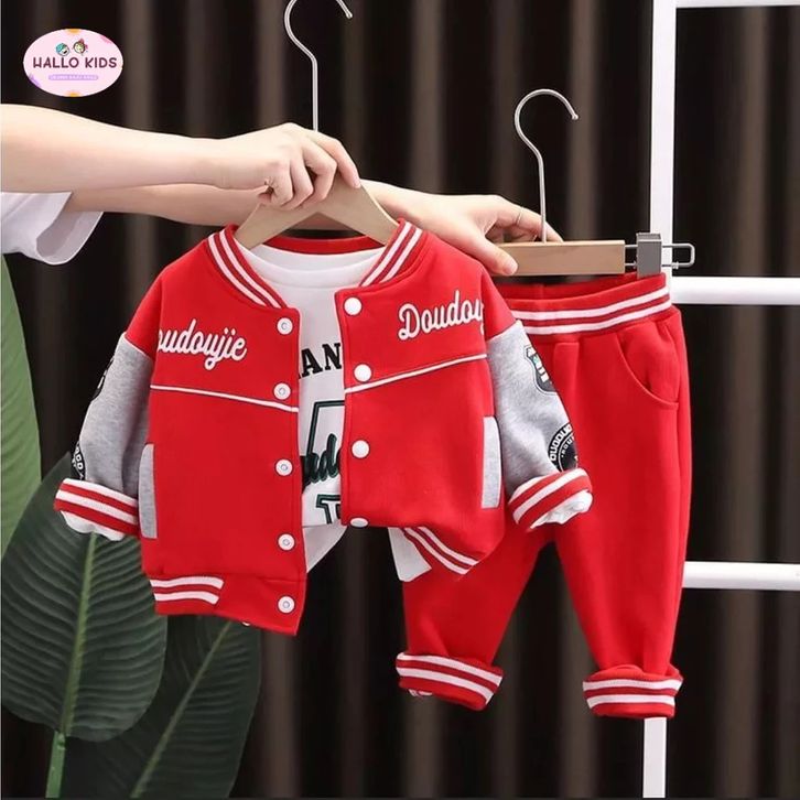 Setelan Anak Laki Laki 1-5 Tahun Set 3 In 1 Jaket Anak Kaos Anak Outerwear Anak Terbaru Pakaian Anak Laki Laki Import