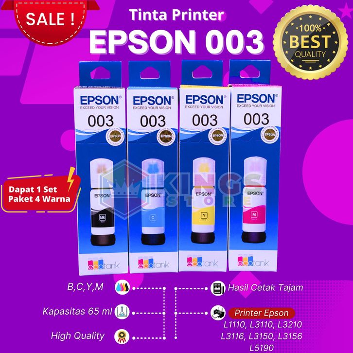 FREE ONGKIR TINTA EPSON 003 (1Set) PREMIUM for Printer L3210, L1250, L1216, L3250, L3216, L3550, L3256, L1256, L5290, L5