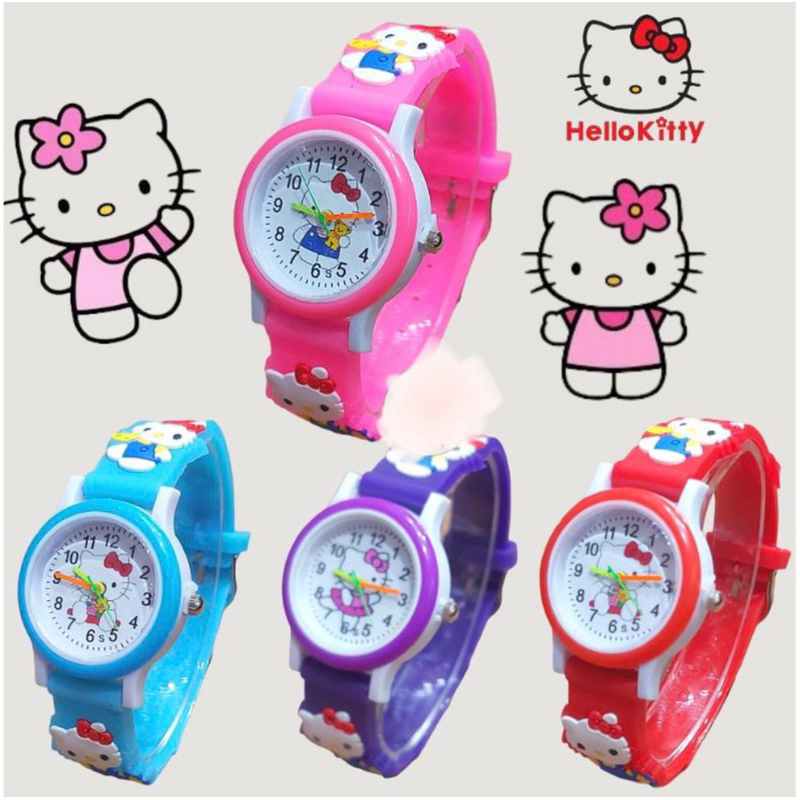 (GROSIR)JAM TANGAN ANAK" WANITA TIMBUL HELLOW KITTY STRAP RUBBER
