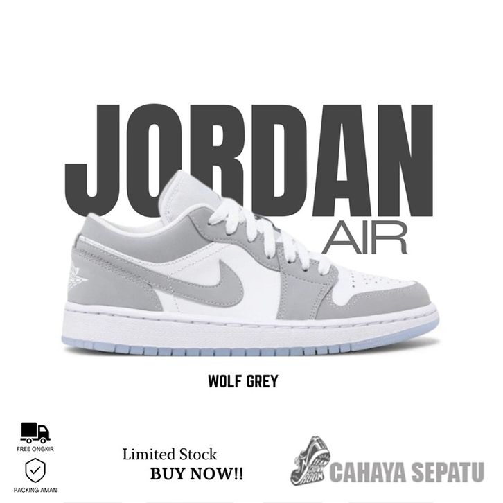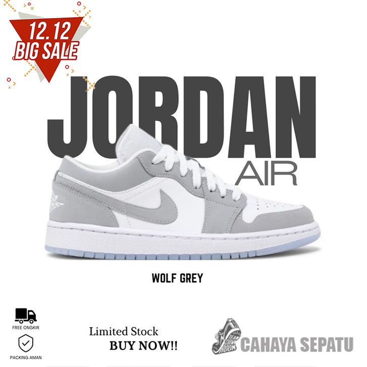 Sneakers Sepatu Pria Wanita Nike Air Jordan 1 Low Wolfgrey Kualitas Premium