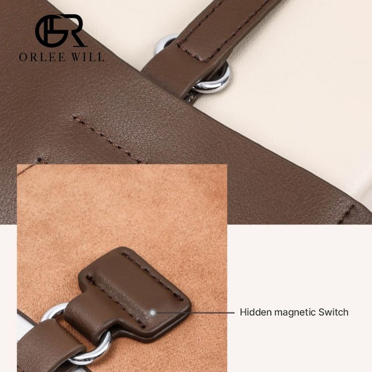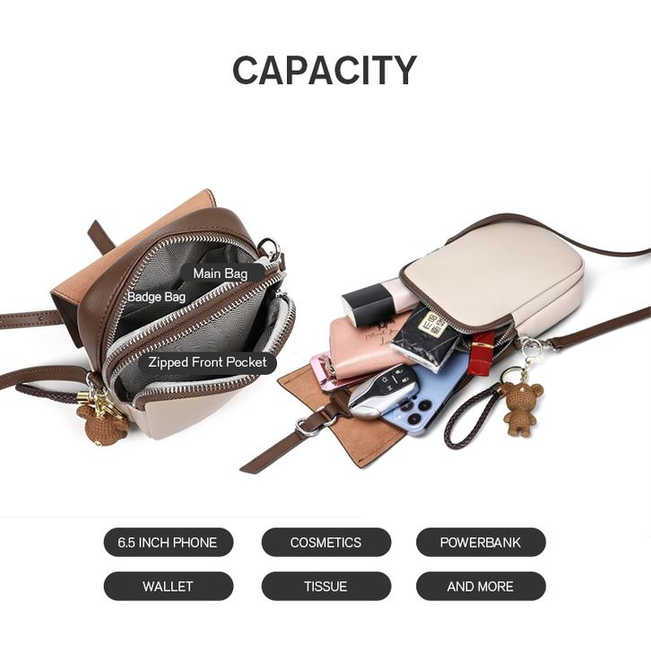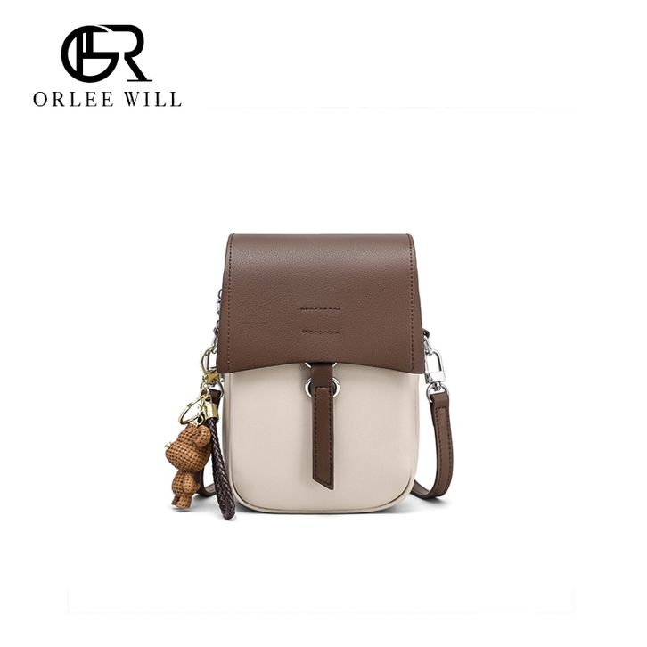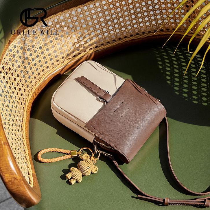 ORLEE WILL Tas Kecil Selempang Wanita Lucu Tas Handphone Kulit Asli OL-02-WHITE+COFFEE