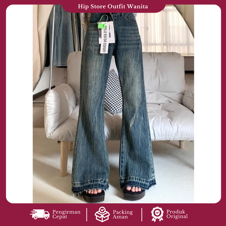 CELANA JEANS HIGHWAIST WANITA KOREAN STYLE CUTBRAY FLARE JEANS KULOT PREMIUM KEKINIAN
