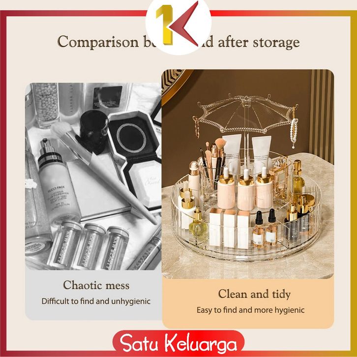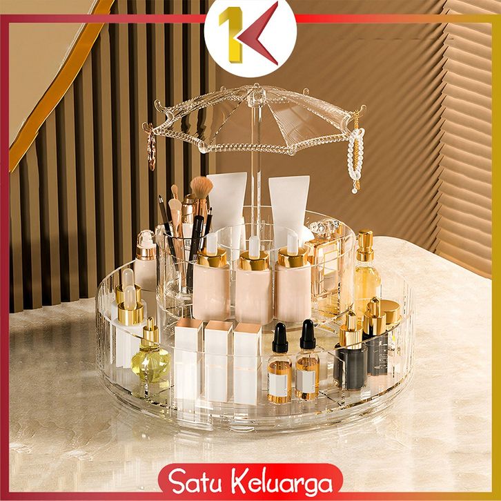 SK-K169 Rak Kosmetik Putar 360 Derajat Transparan Desain Payung Aesthetic / Rak Susun 2 Tingkat / Luxury Rack Cosmetic