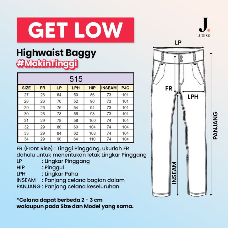 JINISO Celana Wanita Highwaist Baggy Jeans 515 GET LOW Seller Termurah Raa Collections