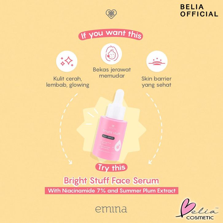 BELIA EMINA BRIGHT STUFF SERIES ACNE PRONE FACE WASH SCRUB WHIP FOAM TONER MOISTURIZER TONE UP SERUM