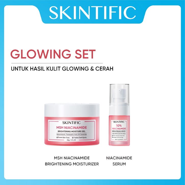 SKINTIFIC 2PCS SET WITH SERUM (CREAM +SERUM) PAKET SKINCARE MOISTURE GEL + GLOWING SERUM /ANTI ACNE