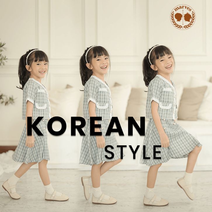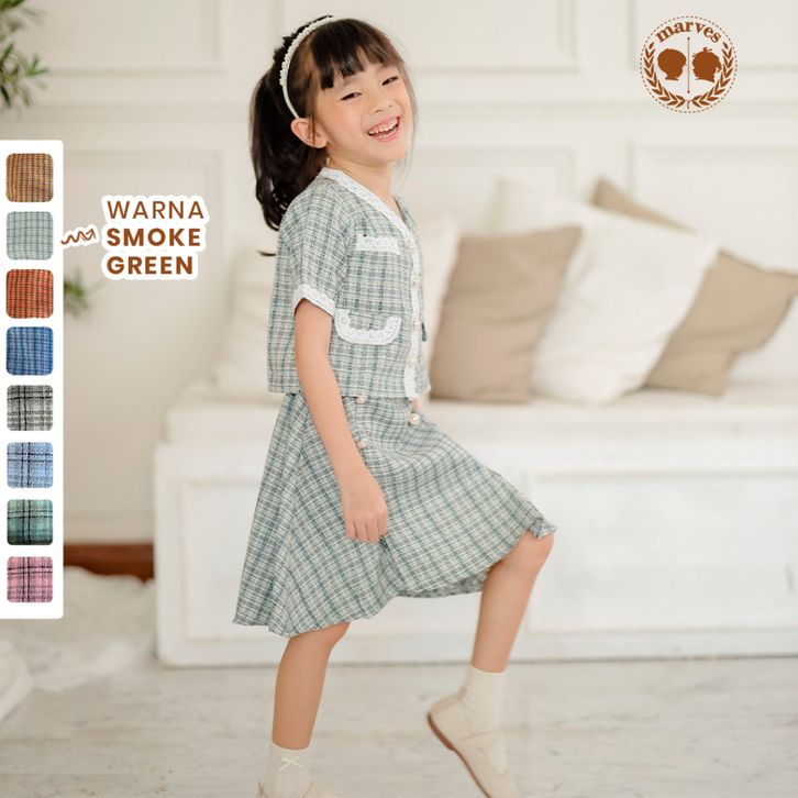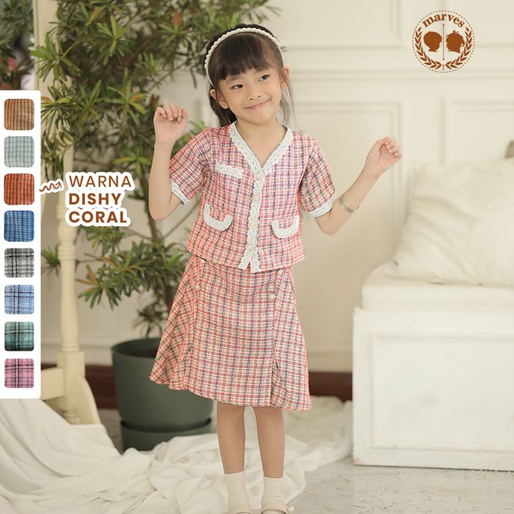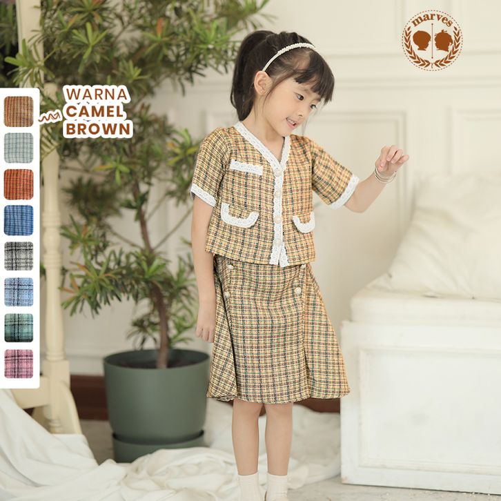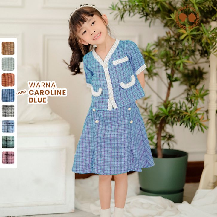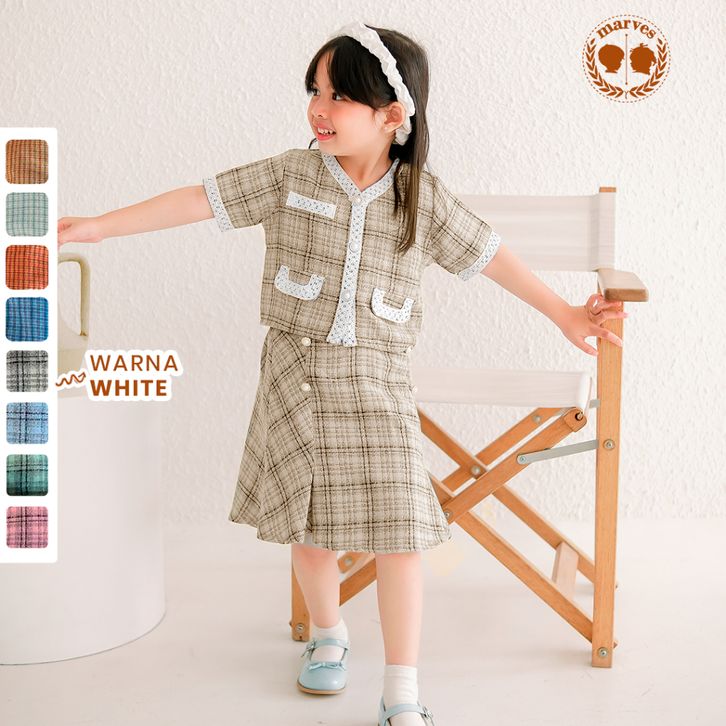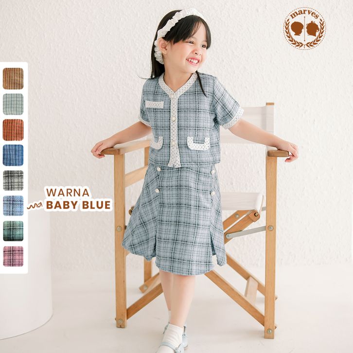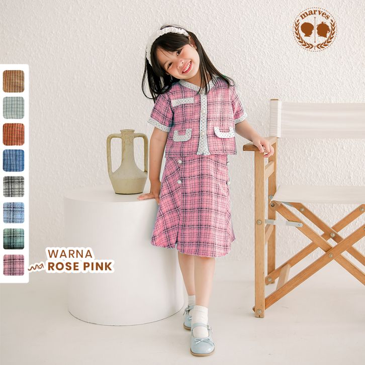 Baju Anak Perempuan Setelan Dress One Set Baju Anak Perempuan Korean Style Bahan Tweed Wool Lengan Pendek Usia 2 Hingga