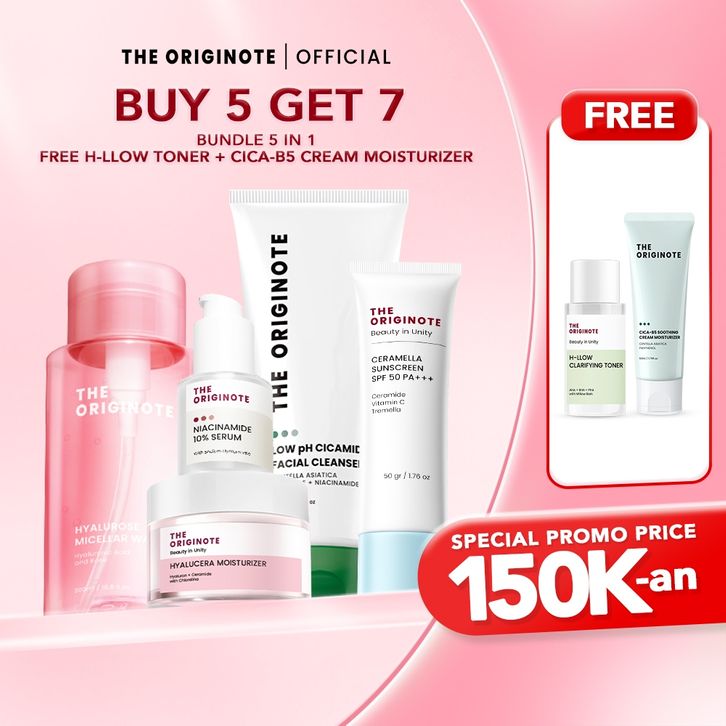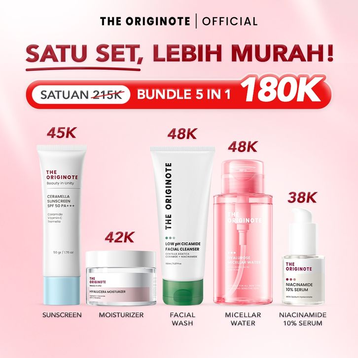 The Originote Special Bundle 5in1 | Skincare Set Micellar Water Facial Wash Moisturizer Sunscreen Serum Paket Perawatan