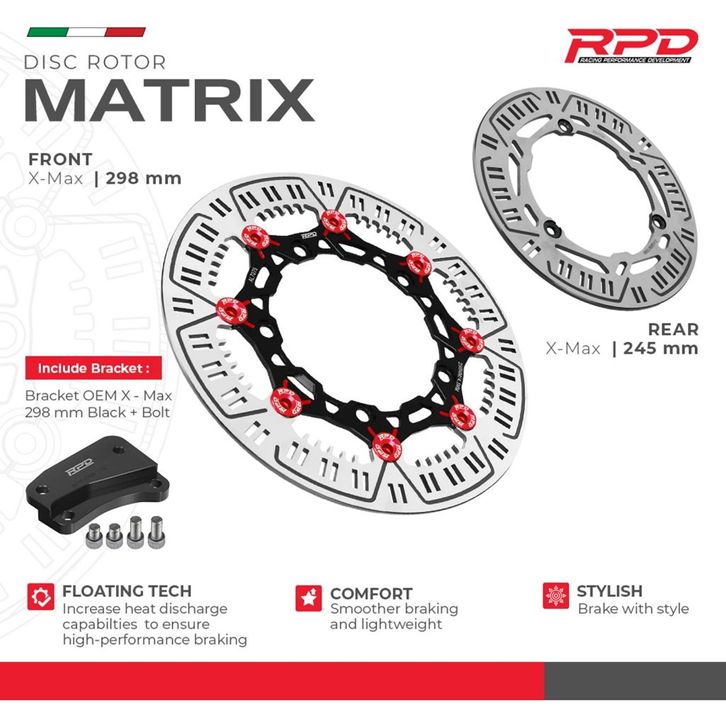 Paket Disc Rotor RPD Matrix Front & Rear Khusus XMAX + Bracket