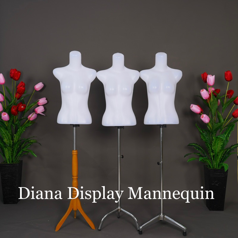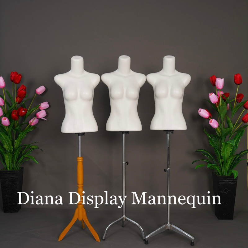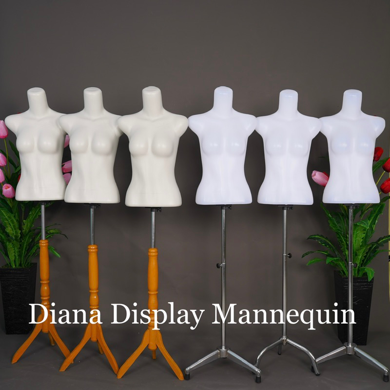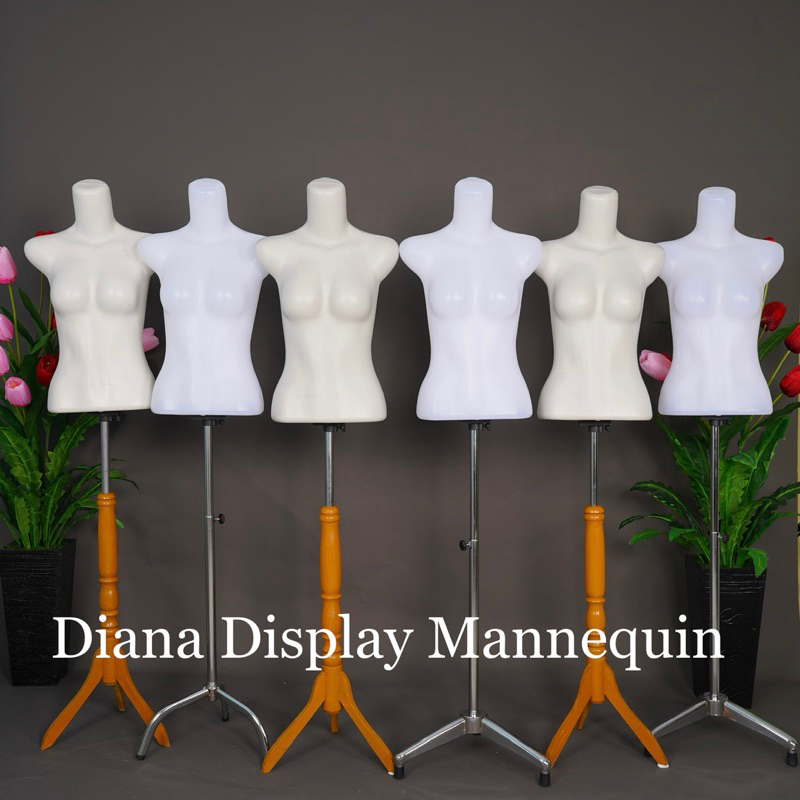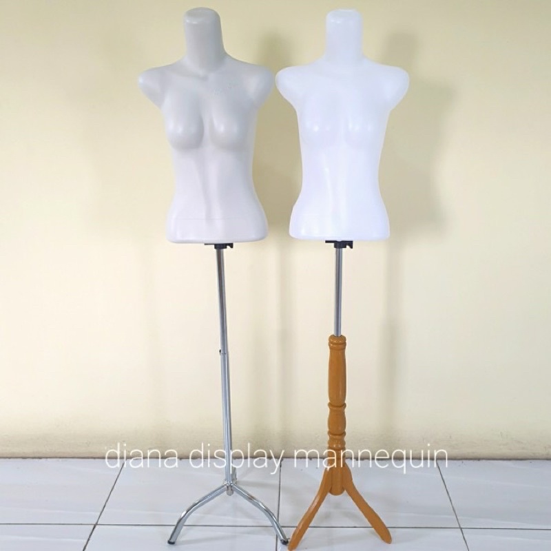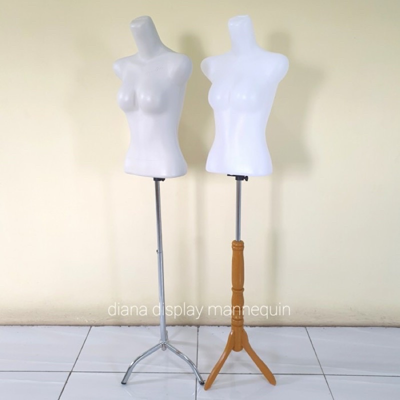 PATUNG MANEKIN ABG WANITA SETENGAH BADAN PLASTIK BENING BUTEK SET DENGAN KAKI KAYU KAKI BESI