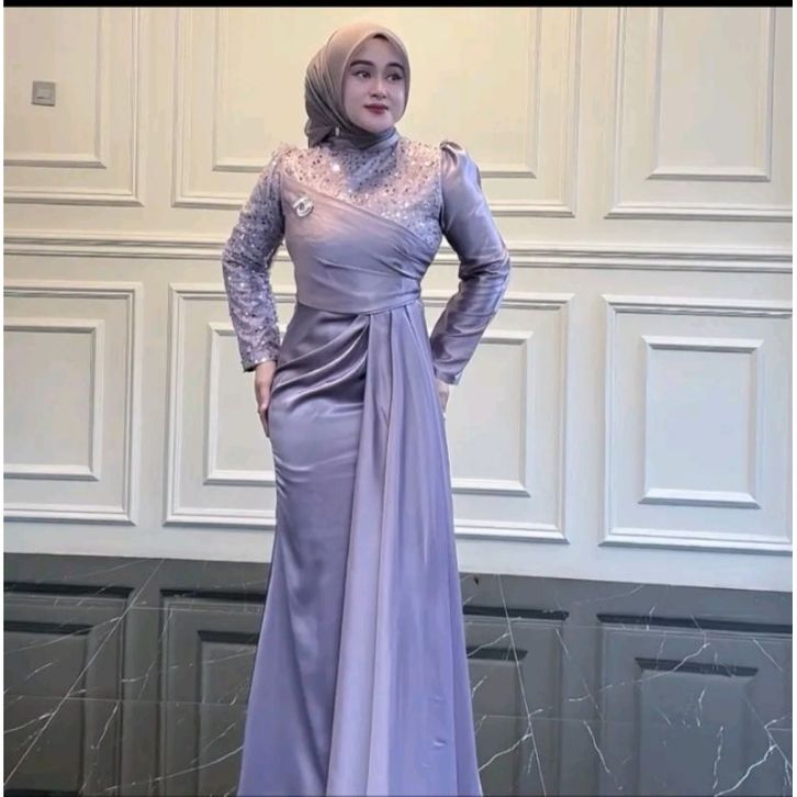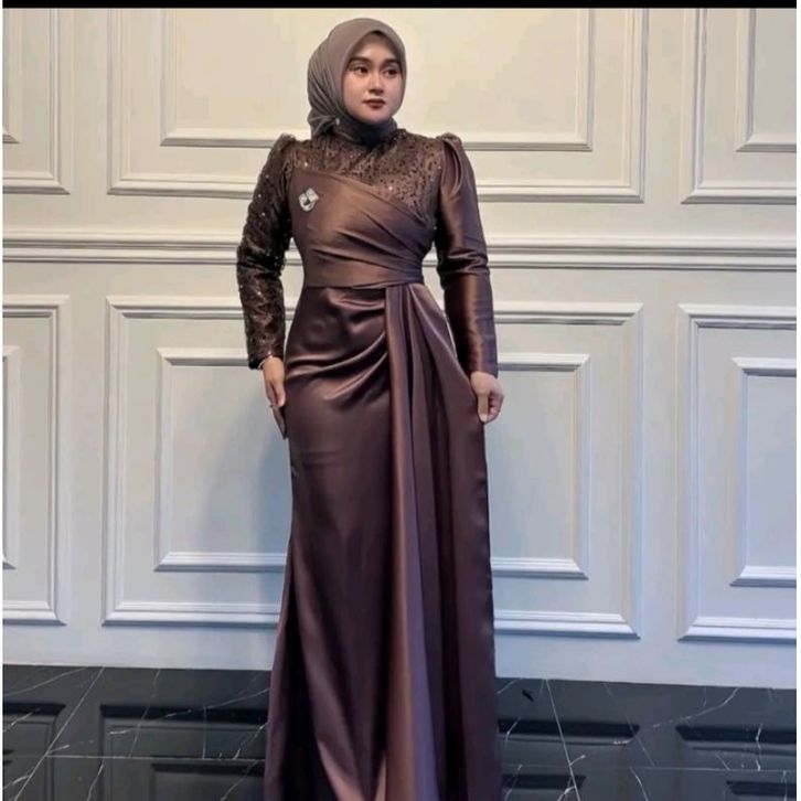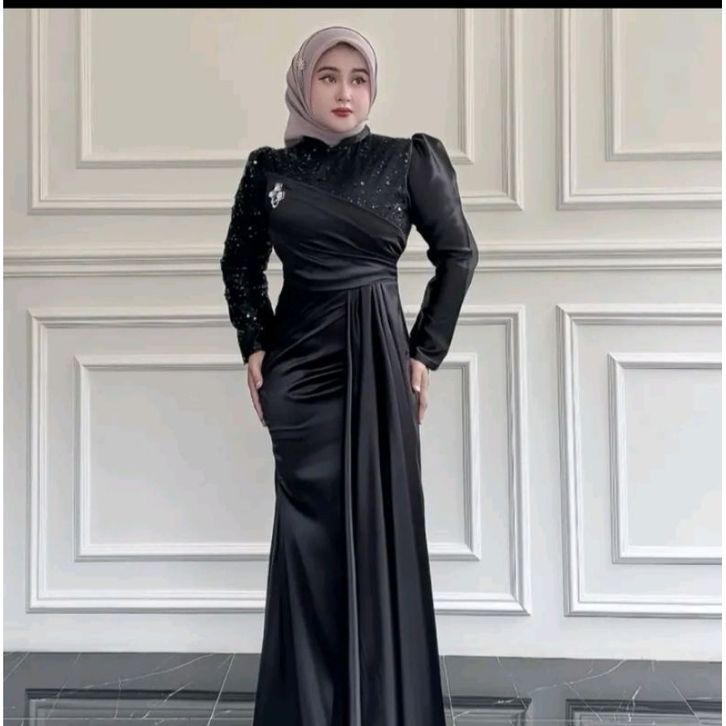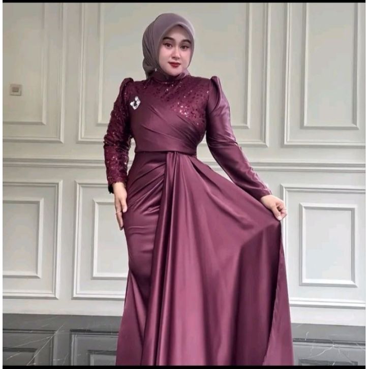 AMORA DRESS SATIN VELVET MIX TILE SQUIN PREMIUM DRESS PESTA WANITA JUMBO S - XXL GAMIS KONDANGAN WANITA TERBARU 2026