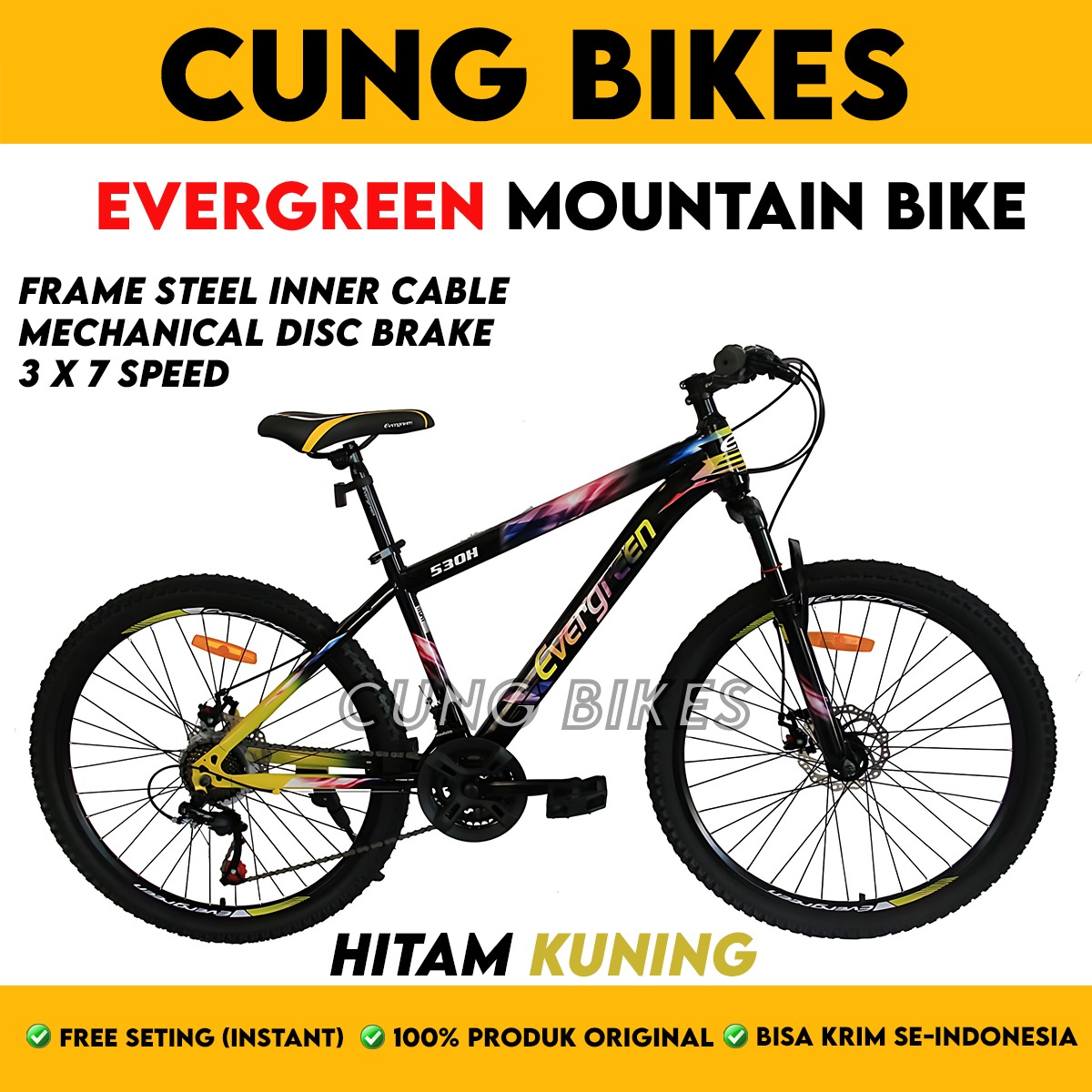 SEPEDA GUNUNG MTB 26 INCH EVERGREEN 530H NEW Design 21 SPEED Double disc brake