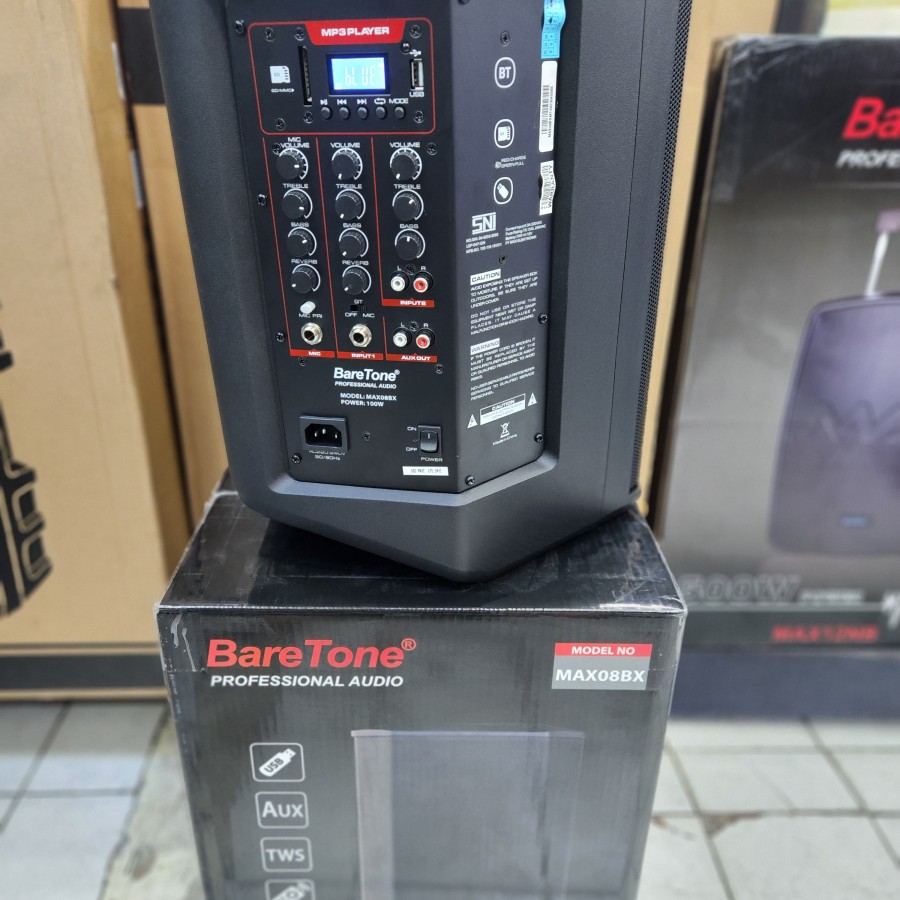 Speaker Aktif Portable BARETONE MAX08BX MAX 08 BX ORIGINAL 8 INCH FREE 2 MIC WIRELESS