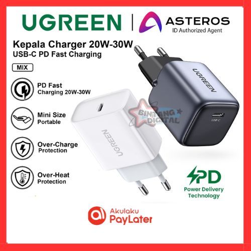 UGREEN Adaptor Kepala Charger iPhone 15 14 13 12 11 Type C PD Fast Charging 20W 30W