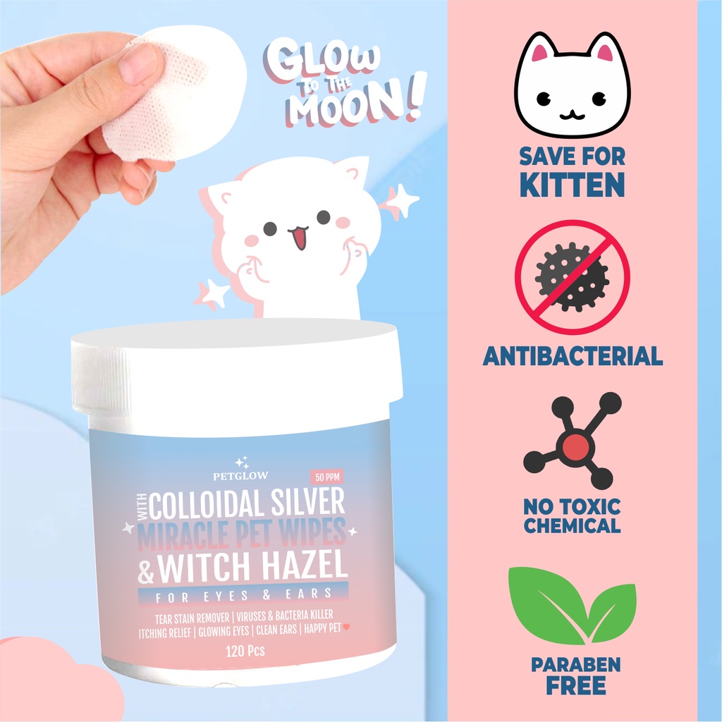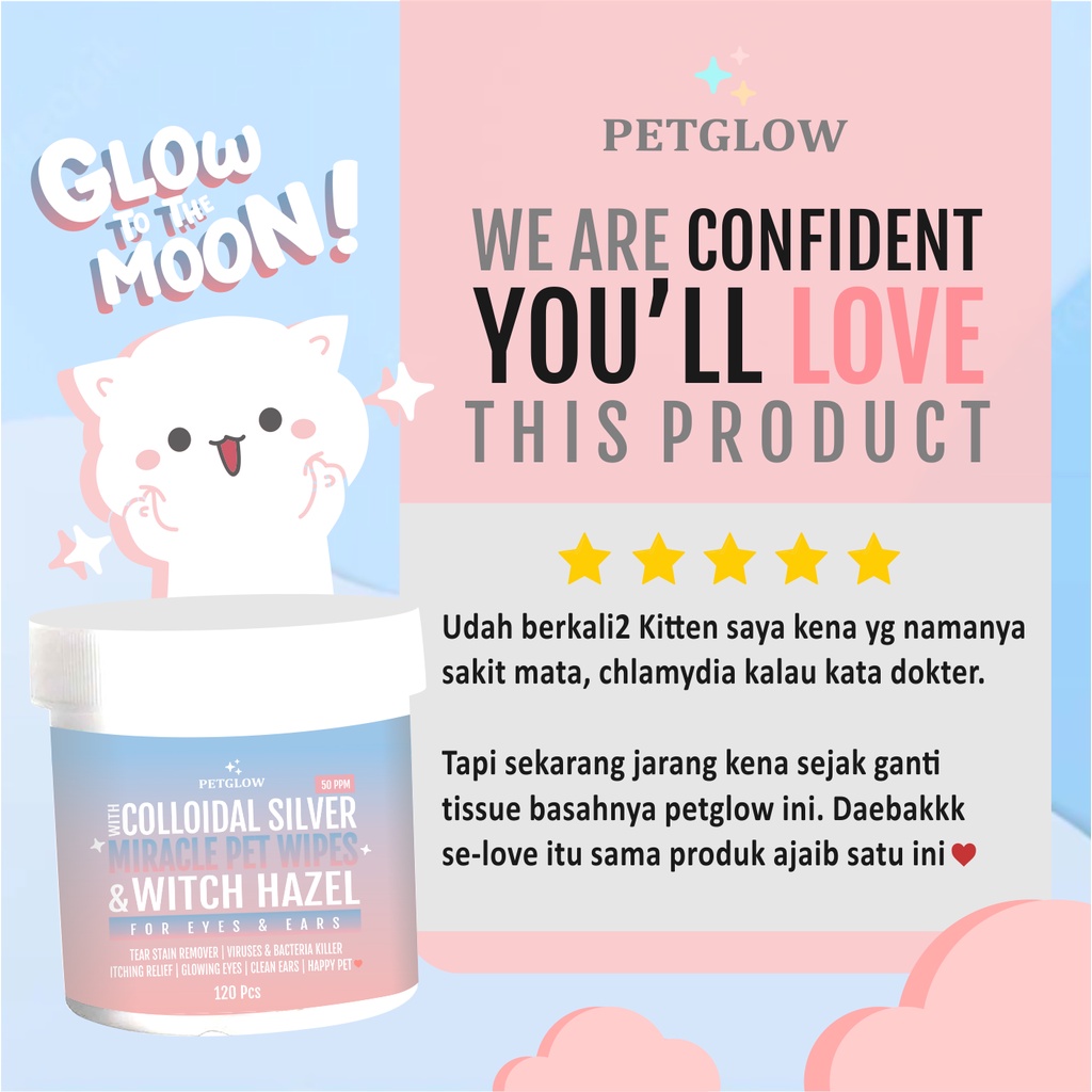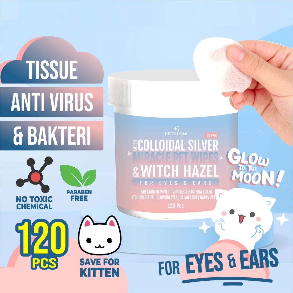PETGLOW COLLOIDAL NANO SILVER MIRACLE PET EYE WIPES TISU BASAH OBAT PEMBERSIH MATA BELEKAN PEMBERSIH TELINGA JAMUR