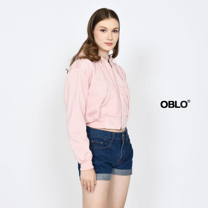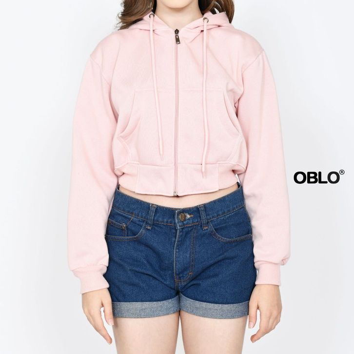 Basic Hoodie Crop Zipper Jaket Resleting Wanita Allsize
