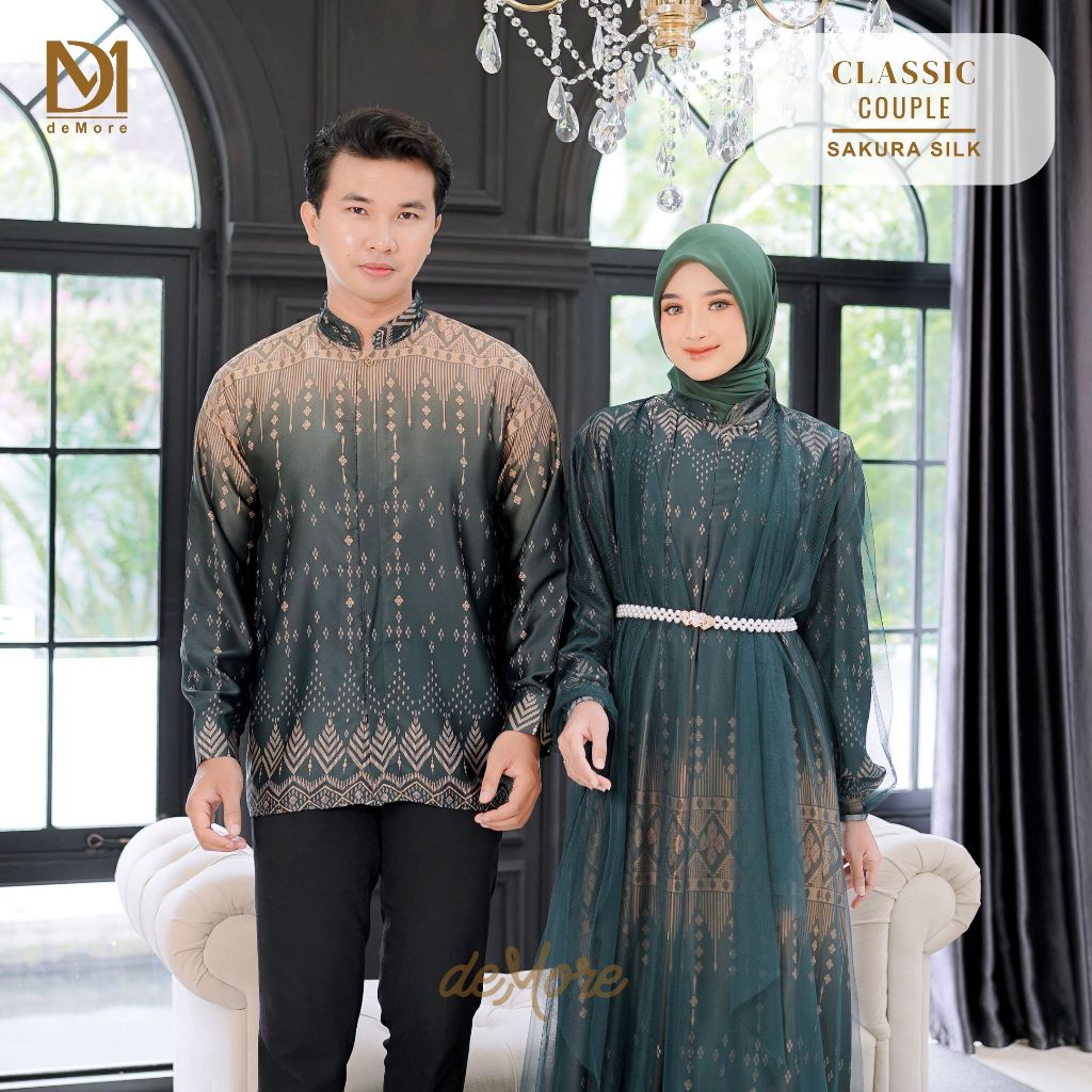 BAJU COUPLE PASANGAN CLASSIC LEBARAN KEKINIAN GAMIS KOKO SAKURA SILK MOTIF GRADASI MEWAH PROMO MURAH