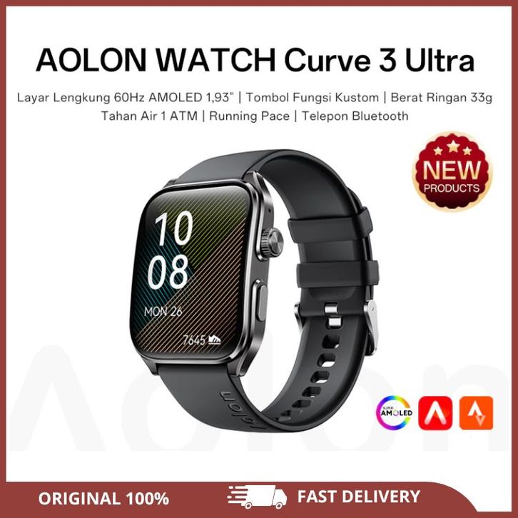 Smartwatch Aolon Curve 3 Ultra 1.93 inch AMOLED 60Hz Layar Bluetooth Call Tahan Air 1ATM Garansi Resmi Original
