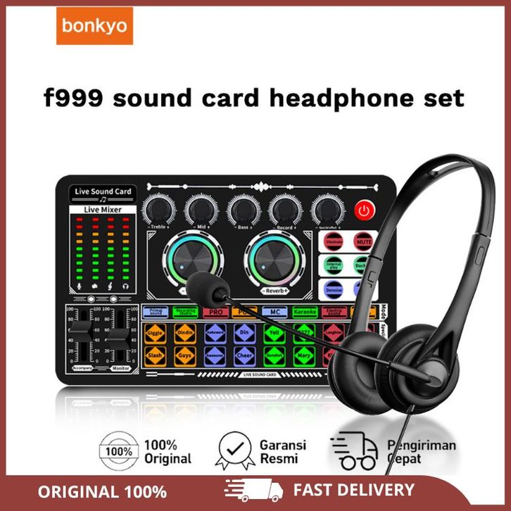 Sound Card Bonkyo F999 Set Streaming Karaoke dengan Microphone Headphone
