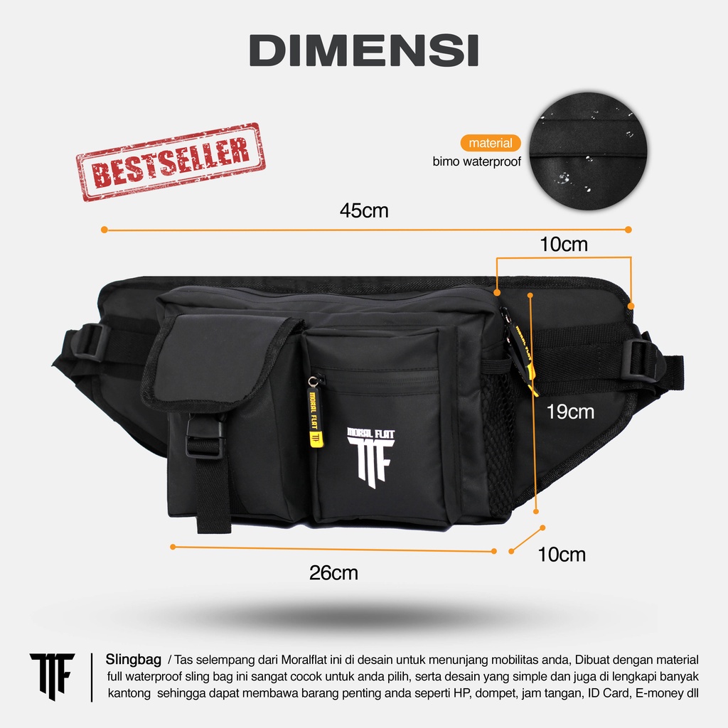 MORAL FLAT -TAS PRIA SELEMPANG - TAS SELEMPANG ANTI AIR - TAS BAHU PRIA - HITAM