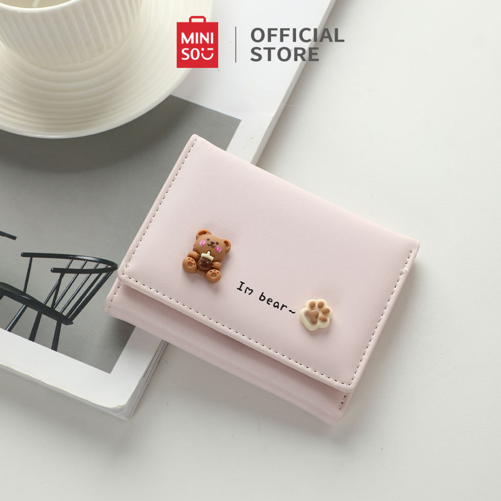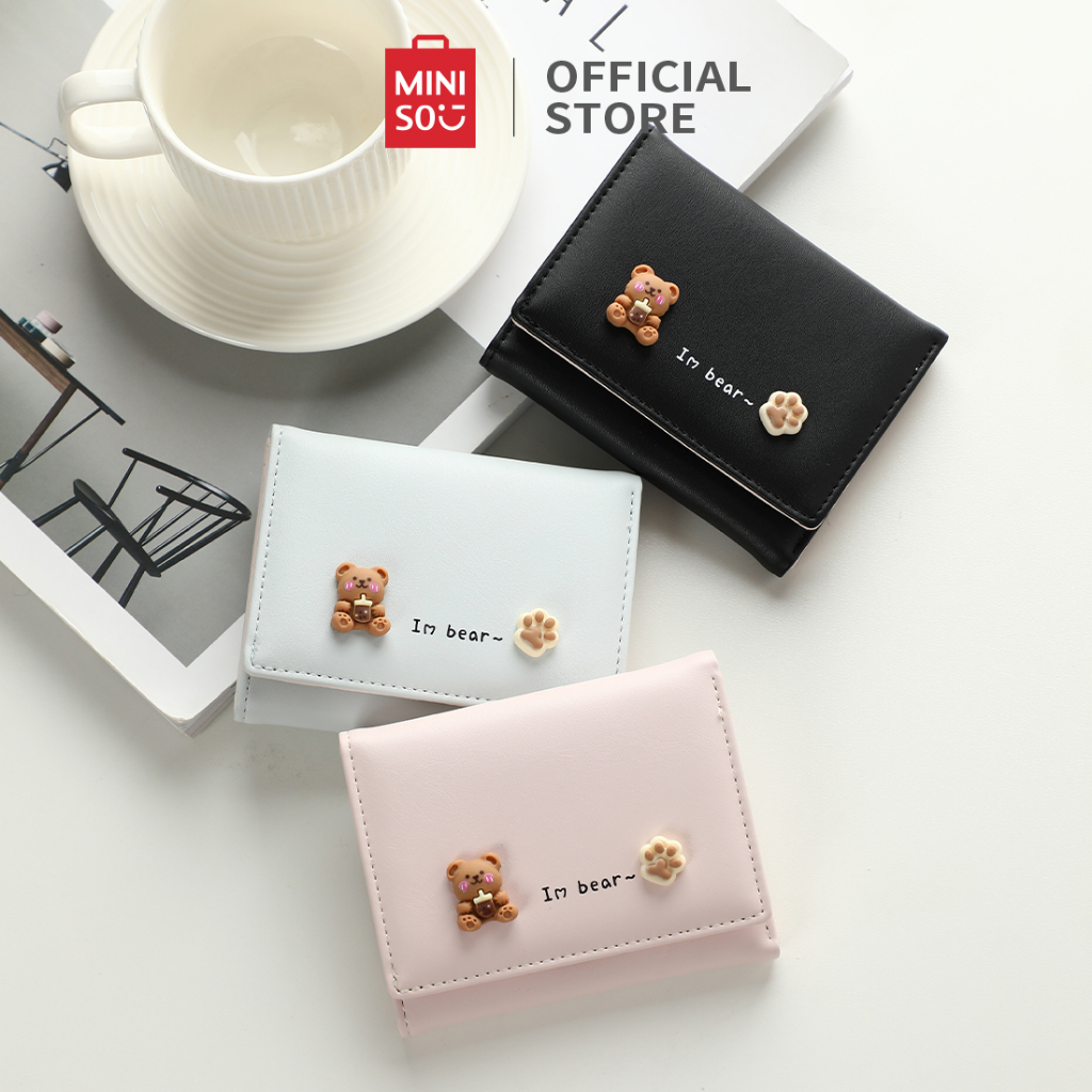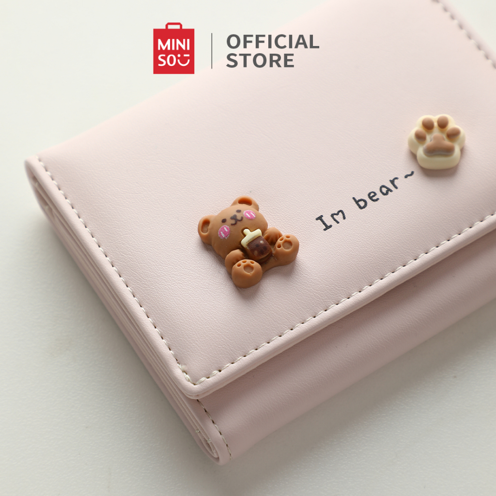 MINISO DOMPET WANITA WOMEN TRIFOLD WALLET BERUANG LUCU SEDERHANA DAN BERGAYA PU TAHAN AUS
