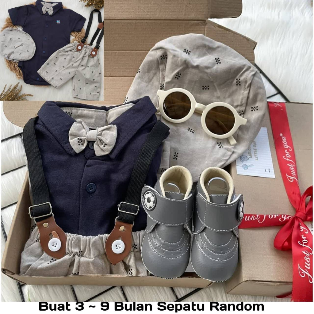 BABY BOY HAMPERS EXCLUSIVE / KADO GIFT SET BAYI MODEL.SUSPENDER BERDASI KACAMATA SEPATU