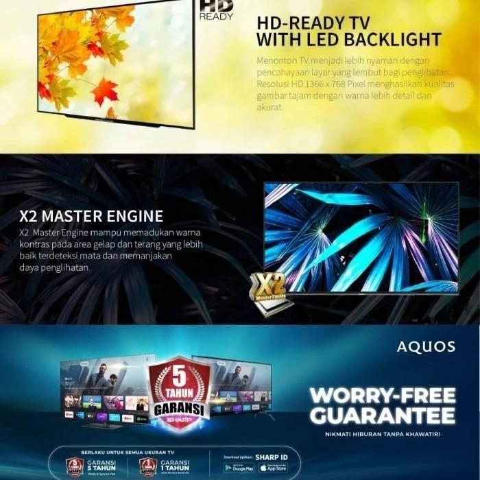 SHARP LED TV 32 Inch HD Digital DVB-T2 USB HDMI 2T-C32HD1500i
