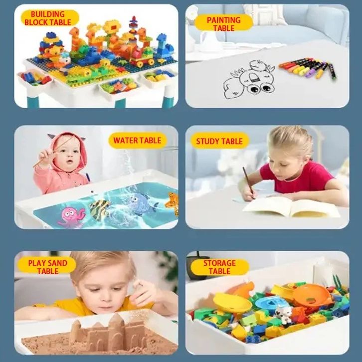 MAINAN ANAK MEJA MULTIFUNCTIONAL BUILDING TABLE 1899-2A MEJA LEGO KP Ready Stock