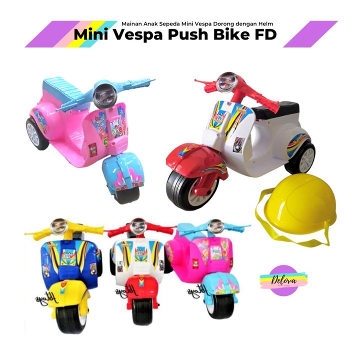 Vespa Mini Push Fun Bike Mainan Sepeda Dorong Anak Balita Plus Helm Roda 3 FD 301 303 307