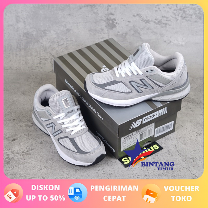 Sepatu lari New Balance Pria Sepatu Olahraga Running Wanita NB Jogging Pria 990 V5 Grey black Sneaker Anak Laki Original