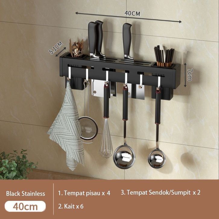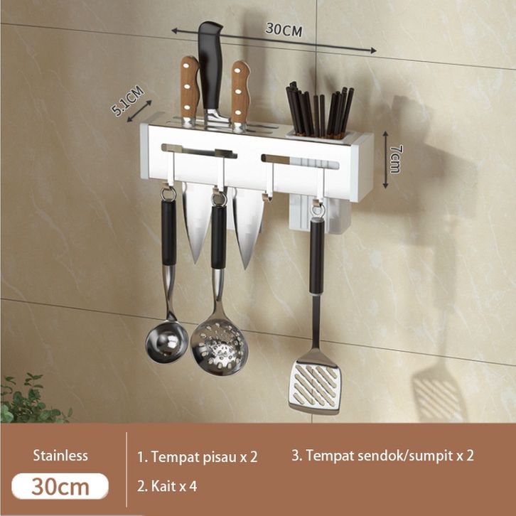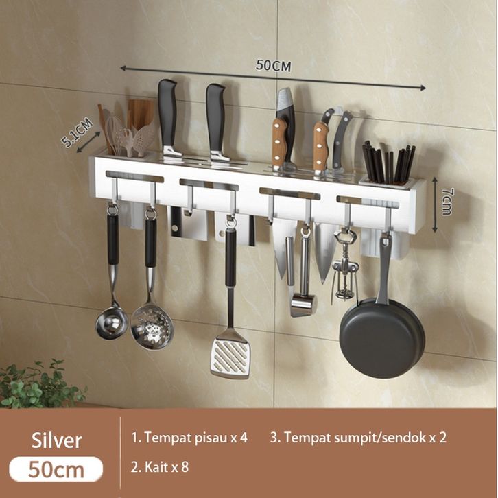 RAK GANTUNG DINDING DAPUR PERALATAN DAPUR GANTUNGAN PANCI DINDING RAK PISAU RAK GANTUNG MULTIFUNGSI STAINLESS STEEL