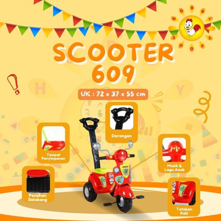 shp scooter 609 sepeda anak skuter goes roda 3 - sepeda duduk dorong anak skuter shp unicorn dino scoter - tricycle