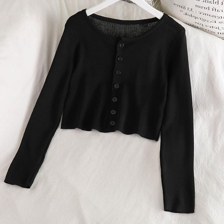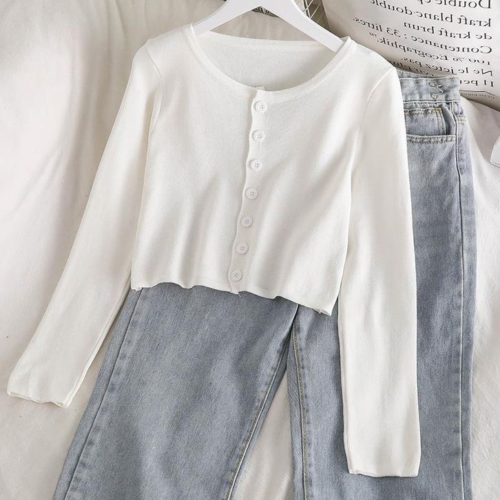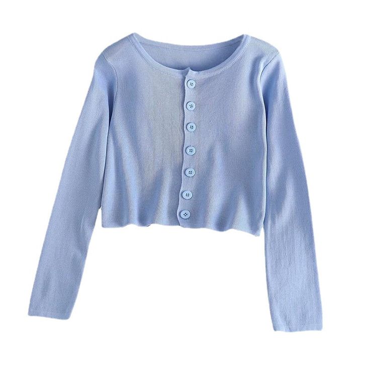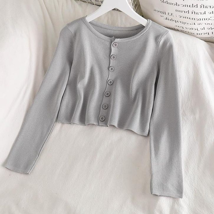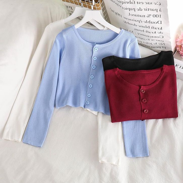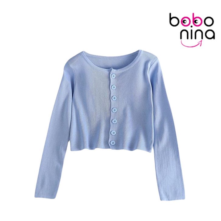 Atasan Rajut Crop Top Kancing Lengan Panjang Kaos Polos Wanita Style Cardigan Sweater Pendek Knit