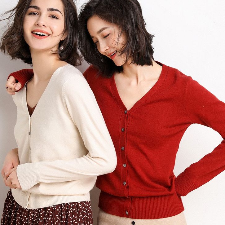 Rajutan Cardigan V-neck Sweater Lengan Panjang kardigan cardigan wanita cardi