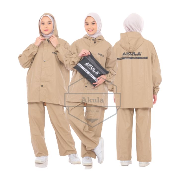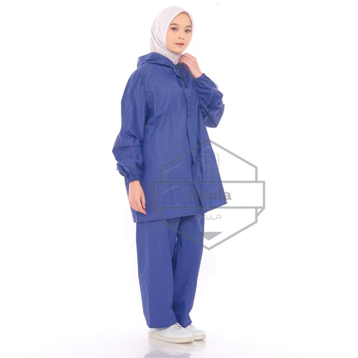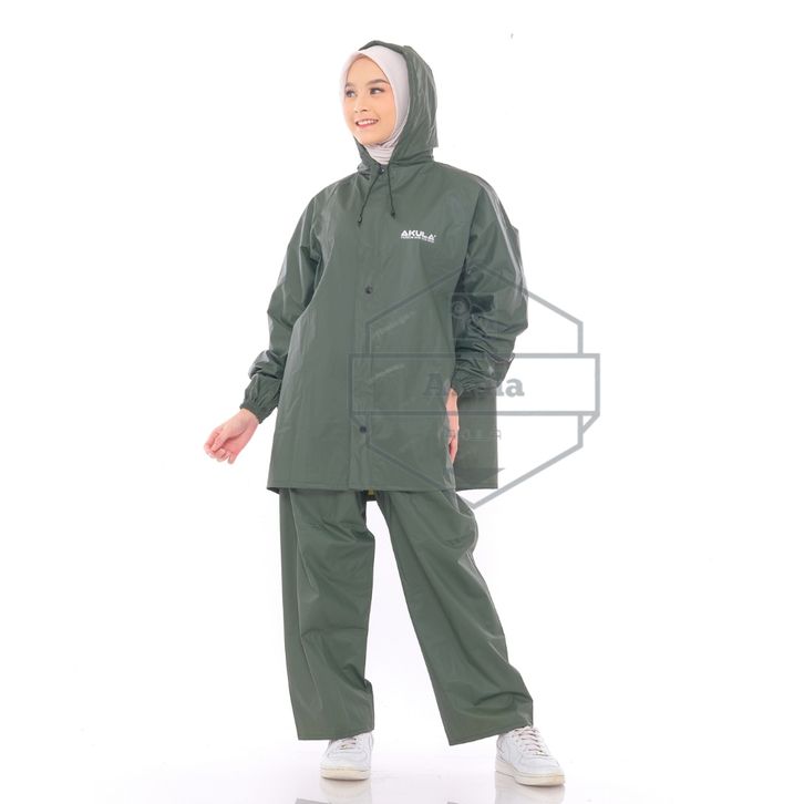 Jas Hujan Pria Wanita Dewasa Setelan Jaket Celana Tebal Berkualitas Anti Rembes Merk AKULA