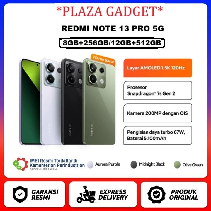 REDMI NOTE 13 PRO 5G NFC 8/256GB+12/512GB MediaTek Dimensity 7200-Ultra Teknologi fabrikasi 4 nm Kamera utama 200 MP