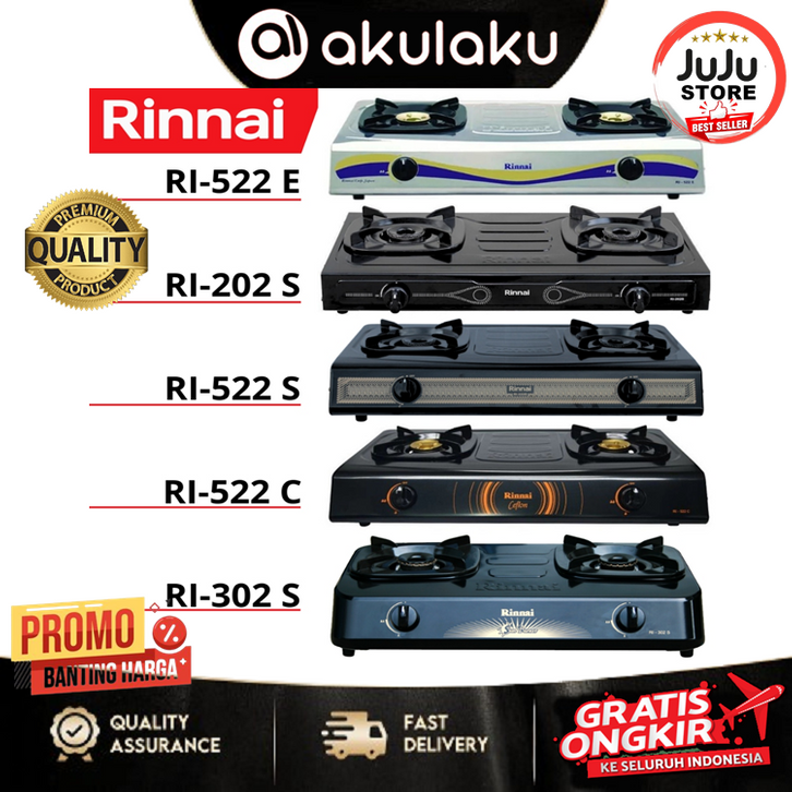 GRATIS ONGKIR Kompor Rinnai 2 Tungku RI 202S 302s 522s 522c 522e Plus Selang Regulator